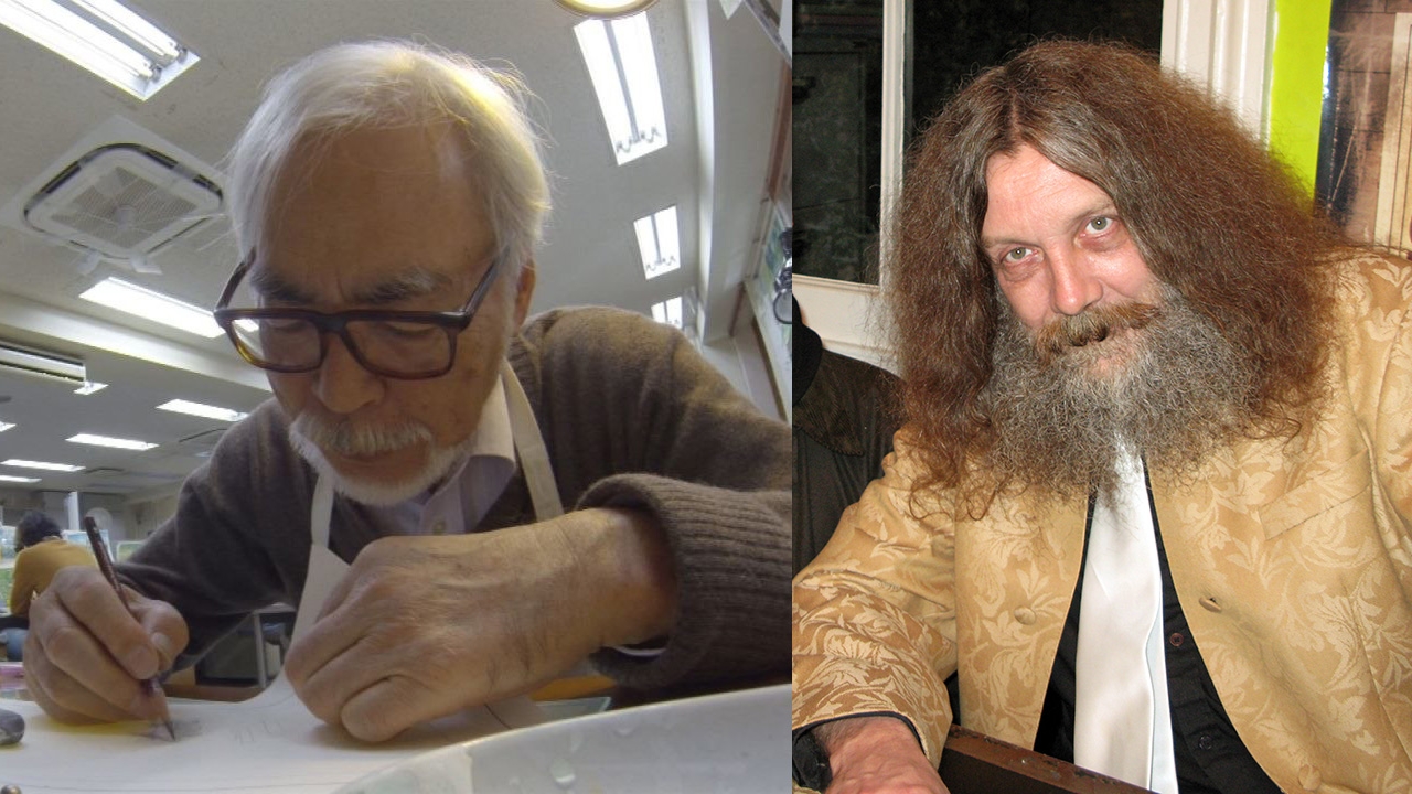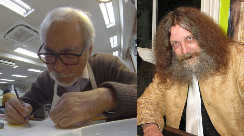 They’re world-famous practitioners of pictorial media. They started out laboring in once despised sub-cultures, then rose to become full-blown artists with establishment respect. And until quite recently, they both had really impressive facial hair. Alan Moore’s magnificent bristle evokes a shaggy primeval forest, housing a Paleolithic shaman from Northampton or a bouncing bellowing Totoro, or both. Hayao Miyazaki preferred to keep his beard neatly trimmed, though this March the shock news broke that he’d shaved it off, saying it was too much “hassle.”