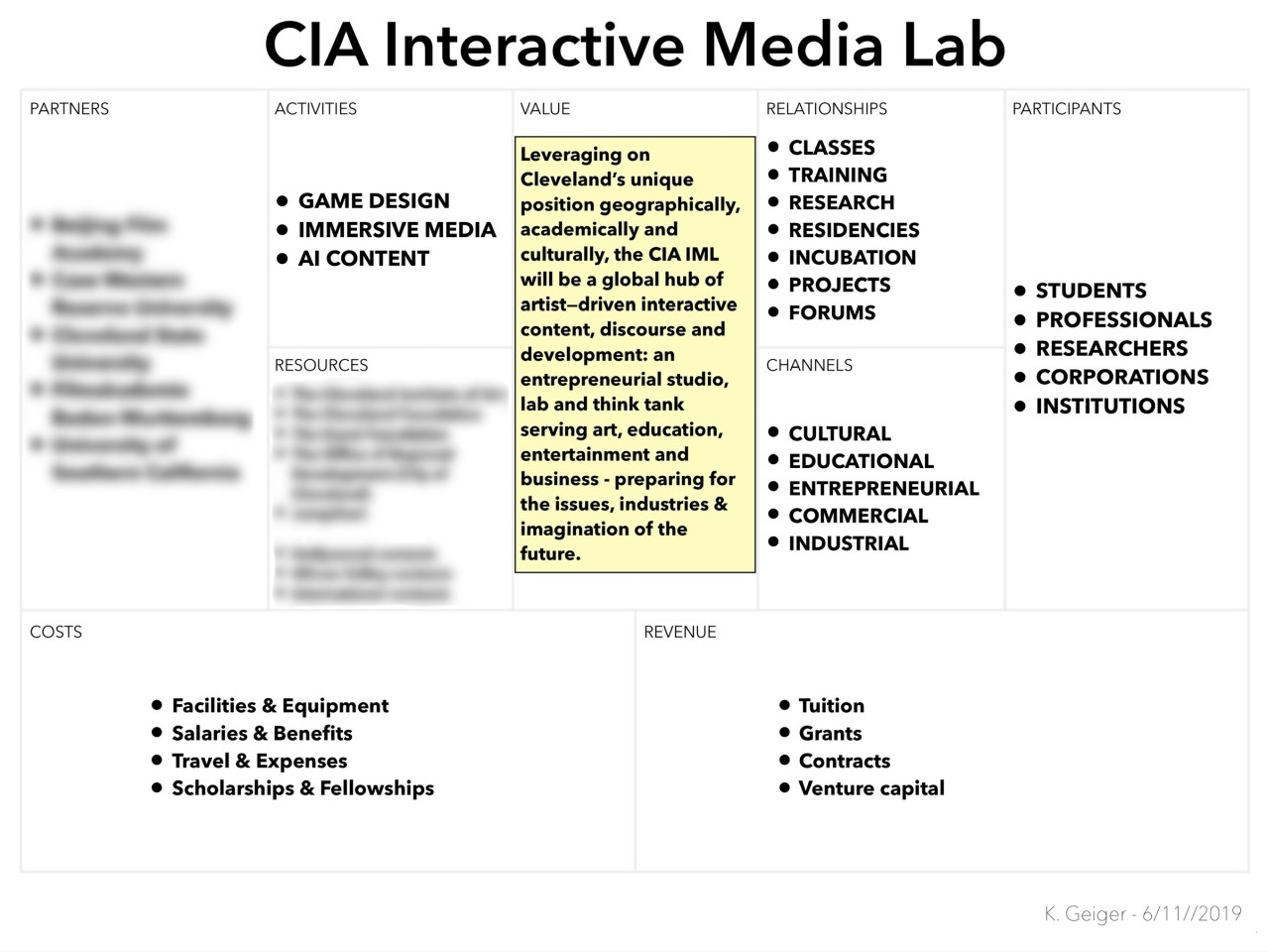In 2019, while still based in Beijing, I was invited to share thoughts on the future of CIA’s Game Design department. I proposed something broader — the CIA Interactive Media Lab (IML): a hybrid academic/industry initiative combining game design education with a content incubator for XR and AI. I drafted a lean canvas for the IML, outlining strategic frameworks, curricular opportunities, and community partnerships.