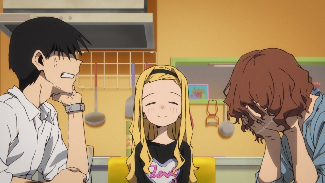 I won’t spoil much about the story, except that it’s one of many anime to reflect on the power of imagined things – even silly things like Takopi, so goofily simplistic beside the beautifully-drawn humans. (Perhaps a better analog for Takopi would be that most hated of American kids’ icons, Barney the Dinosaur.) Other morals are clear by Takopi’s last part, and its ending is considered enough to resonate back through the six episodes leading to it. Incidentally, the ending has a crucial post-credits scene – like the MCU, anime expects you to wait until the very end.