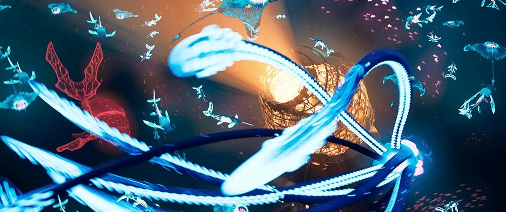 For the fish sequences, the team developed multiple animation cycles by species and scale, ensuring variation and rhythm. These were integrated into Unreal Engine 5 through a redesigned production pipeline. Using the Niagara particle system, they simulated dynamic schools of glowing, flying fish, combining hand-animated elements with procedural motion to achieve organic crowd behavior, seamless transitions between shots, and cohesive lighting and rendering within the Unreal environment.