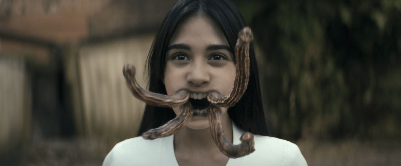 Practical elements were shot as reference. “There were a lot of things that I knew we would need to create in CG, but I wanted to have strong references going into post,” Heston explains. “For example, in the lab, when we had a face melt character and the tentacle character, we needed to have some references in the scene to get that cloth interaction. For the melting face, we did some footage tests with baking soda, baking powder, and boiling milk and maple syrup. We went in knowing what the slow, bubbling skin could potentially look like. That was fun to create.”