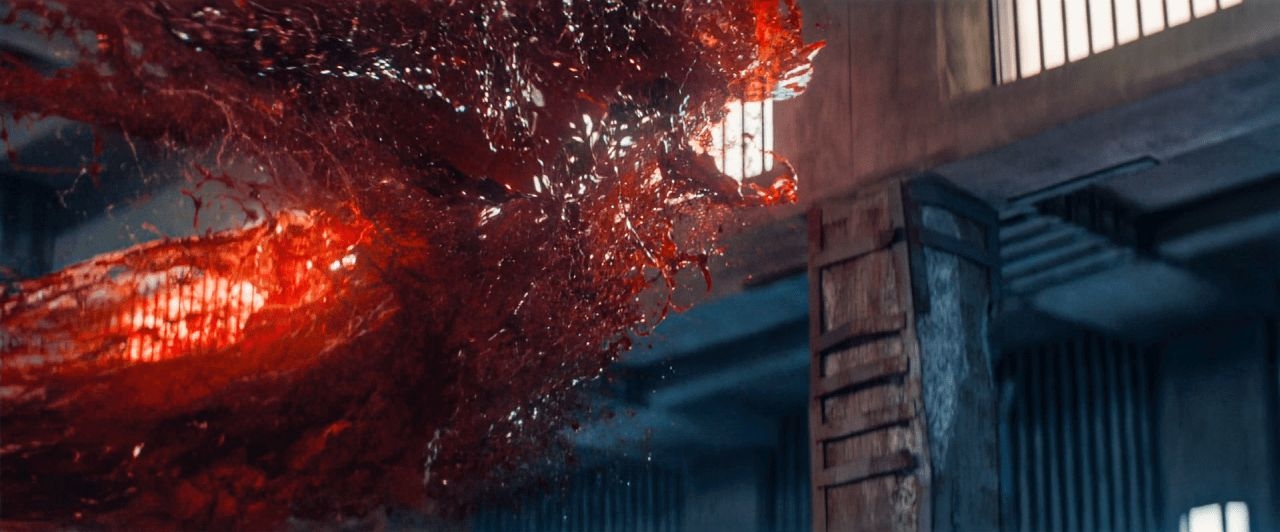 Miniatures were also created by the art department to use as reference. According to Heston, “We did scaled-down models based on the size ratio of what a little person looks like running across the floor, standing, or sitting at a table. Then there was the water tank work. How do we get the scale of the water to match her size when she's a real sized person that needs to be little? There were a lot of math considerations and planning with the art department and some of our other departments, like stunts with John Koyama, to make sure that the wirework was solid in the tank. Special effects had to make sure we had some cool atmosphere throughout the scenes. We wrapped a tank in black for when she's in the pipes, and wrapped a tank in white for when she’s in the toilet.” Noting key simulation work that was also done, Heston adds, “There was a lot of simulation work with the blood tendrils and big arc at the end where we had a huge wave of blood. Those were two of the biggest things onset that we dealt with.”